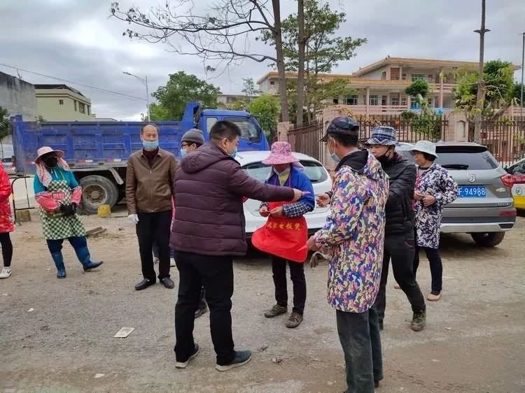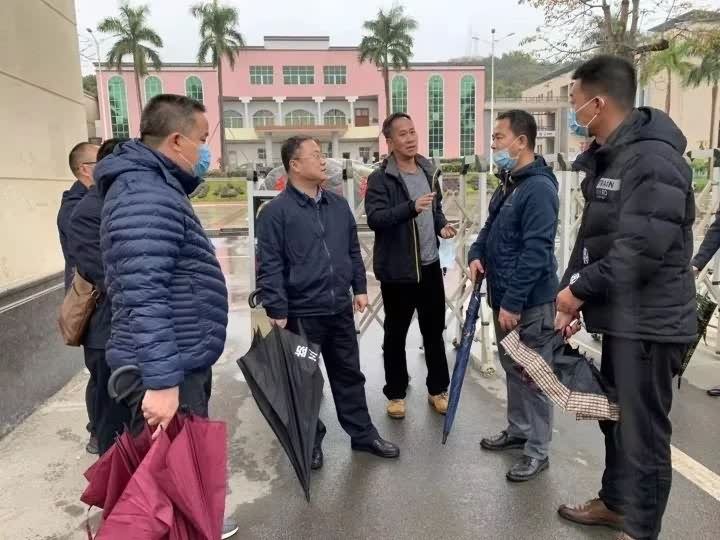 新丰县广业环境治理有限公司董事、瑞奕环保陈伟总经理在环卫部门廖剑波、李伟等管理人员的陪同下,不畏疫情严重,慰问遥田镇一线环卫工人,强调自我防疫,安全作业。