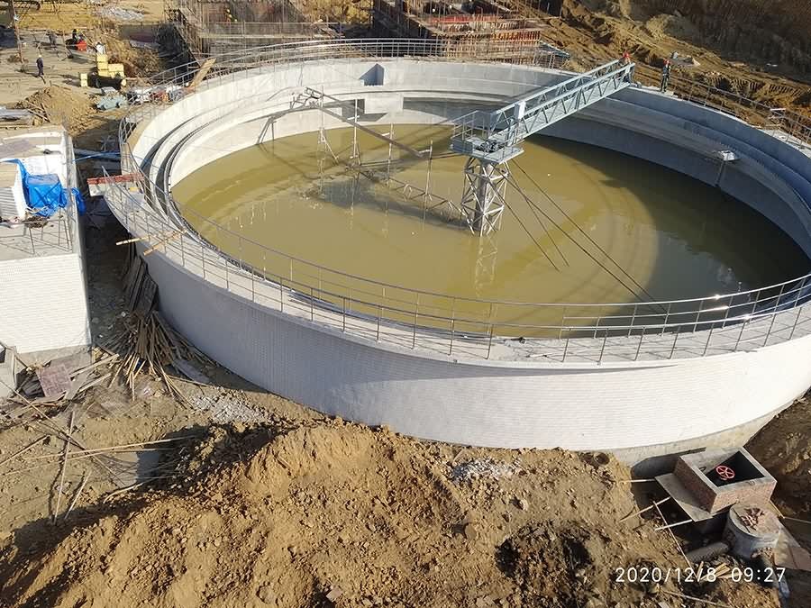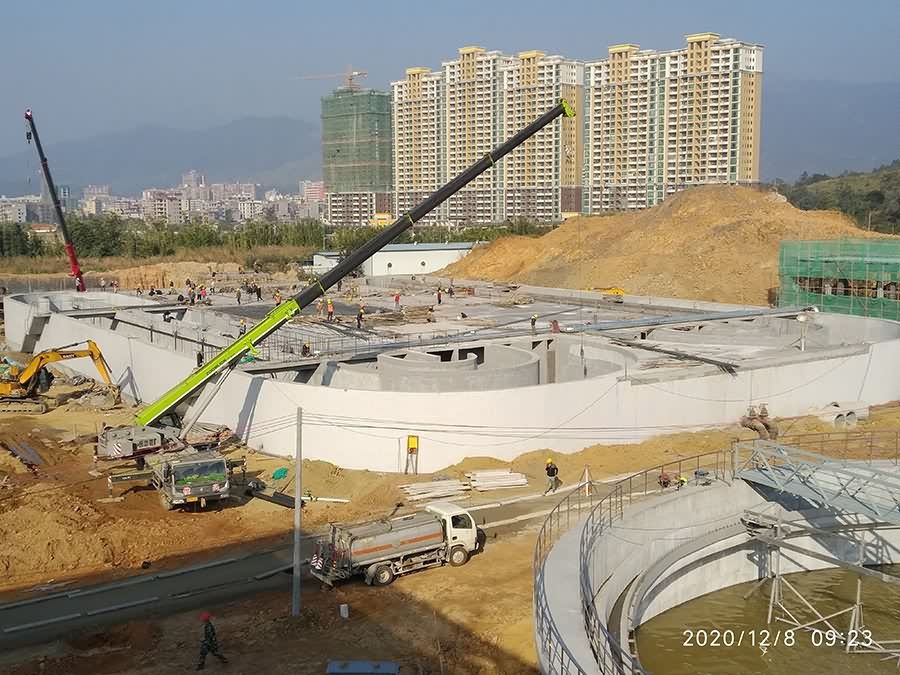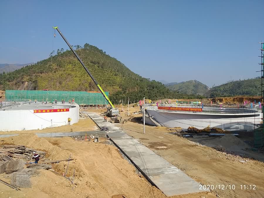 项目主体结构施工从 9月10日开始起算,历时3个月完成池体主体结构和粗格栅、氧化沟、二沉池、高密度沉淀池、紫外消毒池、巴歇尔槽等机电设备安装,达到通水试运行条件。
